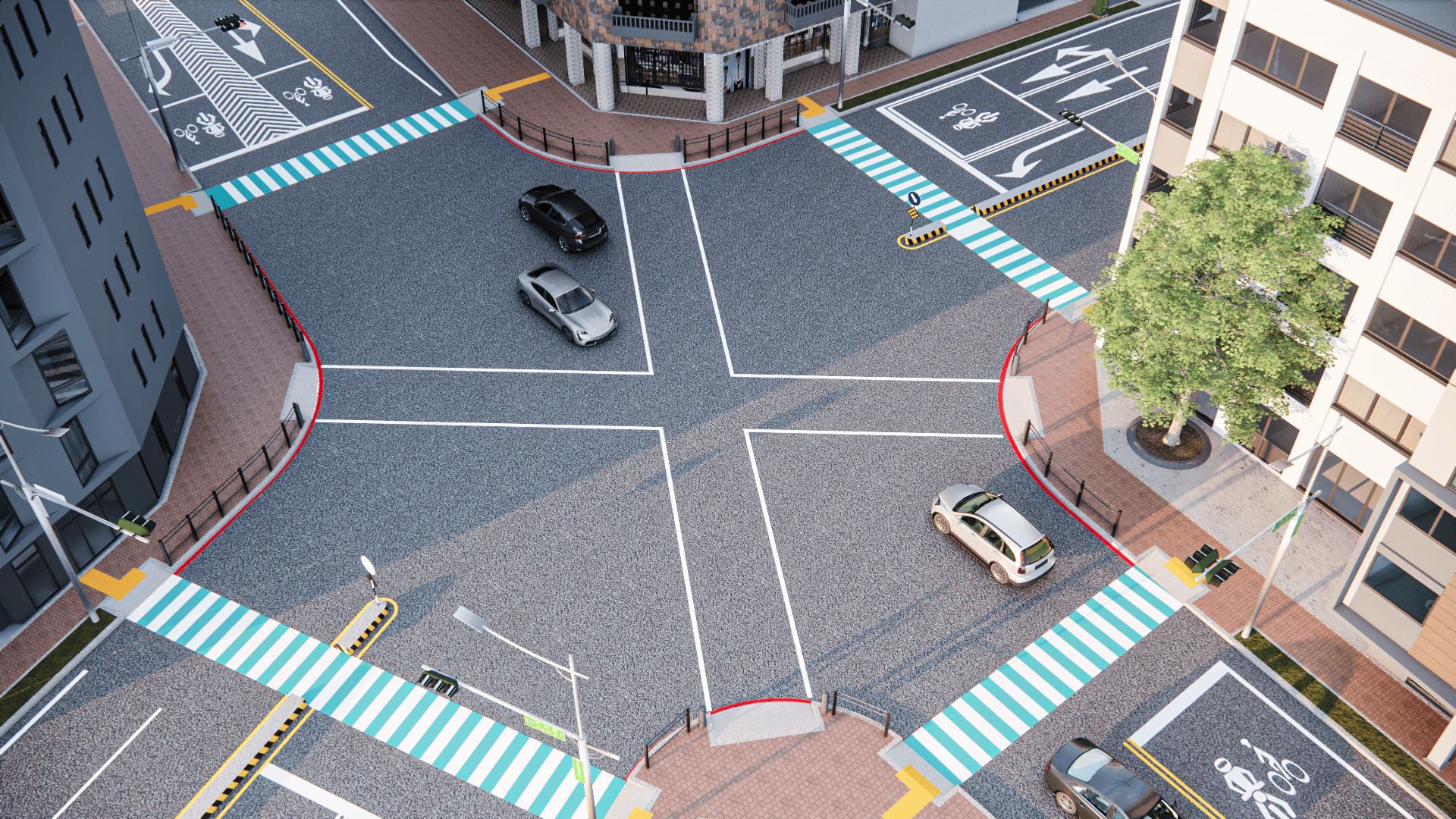 ▲中山路、中正路林百貨路口的友善安全交通環境規劃示意圖。(交通局 提供)