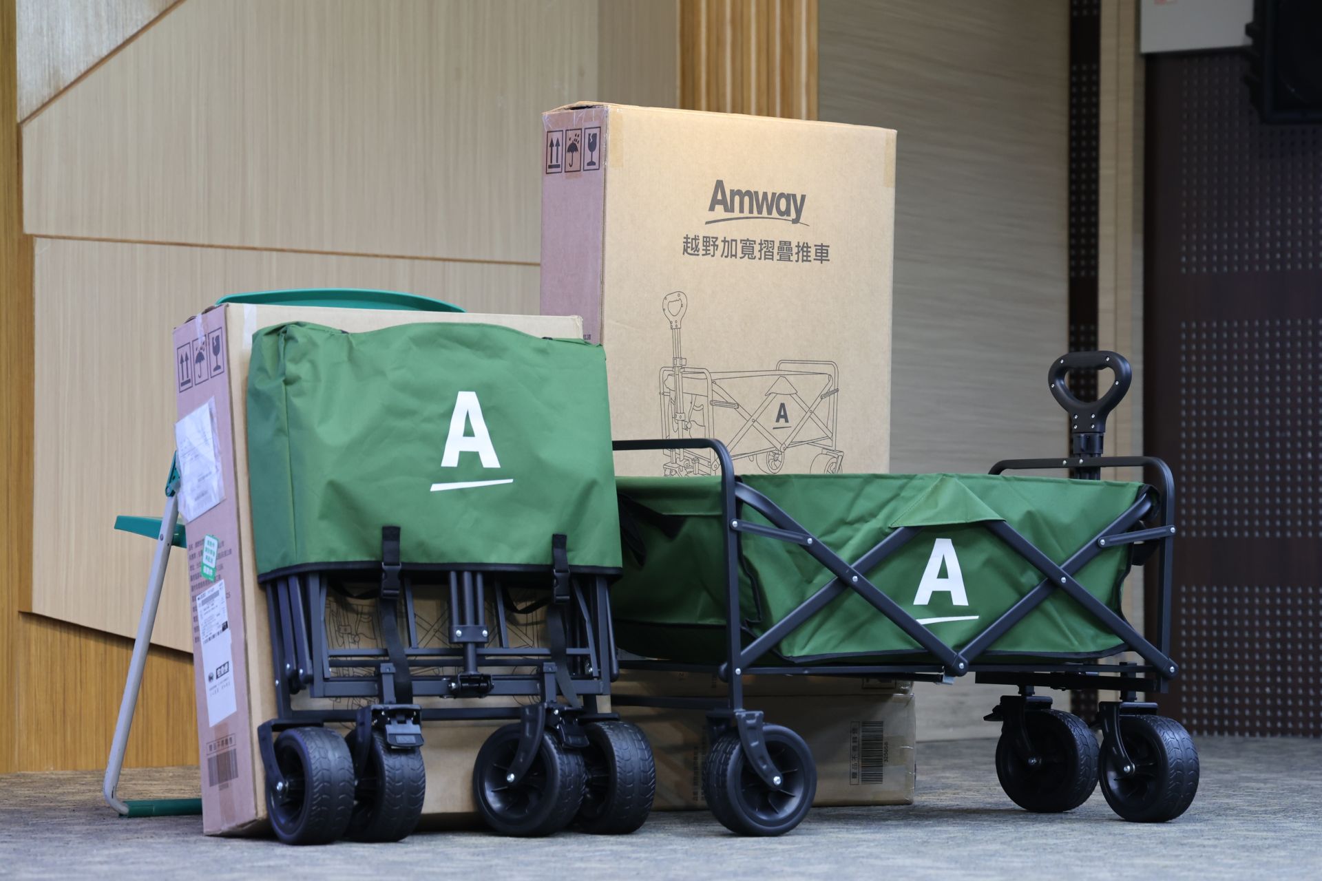 ▲安麗日用品股份有限公司捐贈越野加寬摺疊推車。(記者黃雋淮 翻攝)