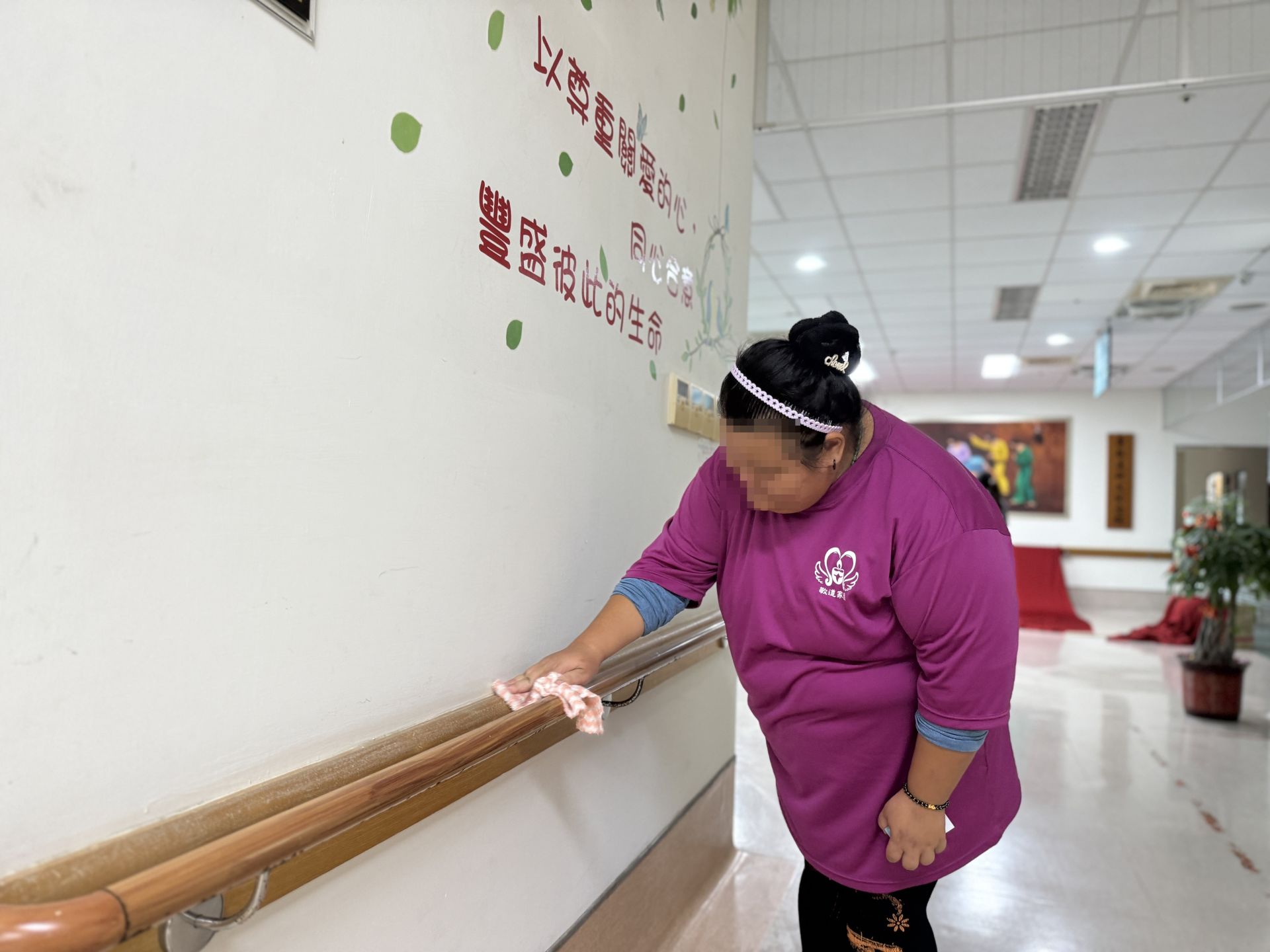 ▲亭亭原於敏道家園擔任廚房助理,主管評估亭亭的工作職務適性後,轉調為清潔人員。(圖/雲嘉南分署提供)