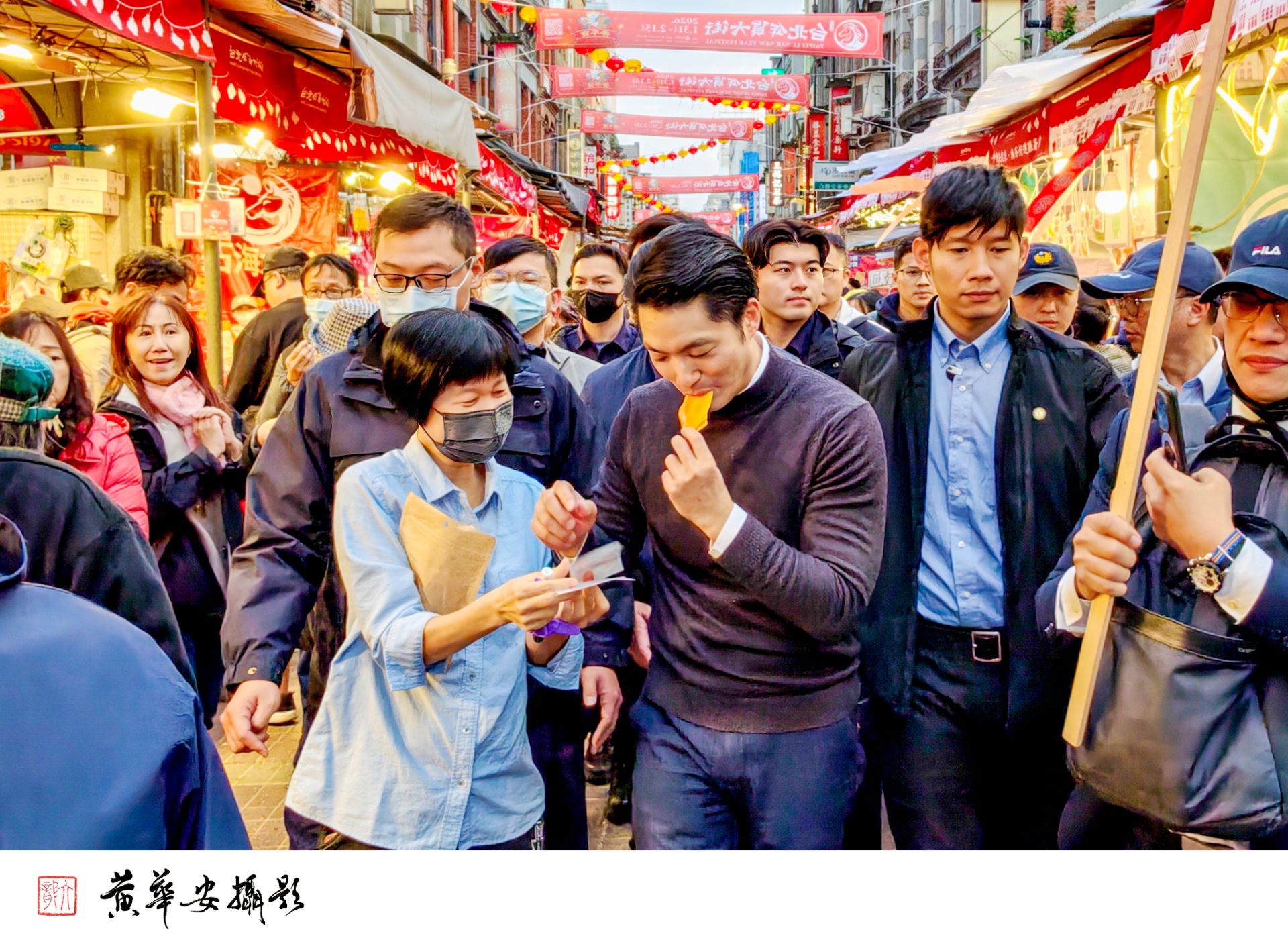 蔣萬安與市民近距離互動,老少民眾紛紛合影,展現年貨大街的人氣與活力。(圖/記者黃華安攝)