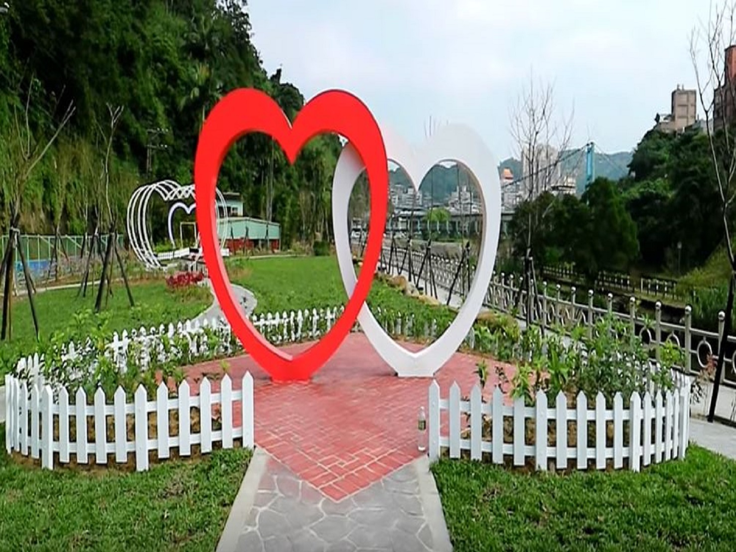 基隆市暖暖區暖心公園,為公告的禁菸場所,歡迎在暖心公園的浪漫心形裝置藝術前留下甜蜜合影。圖/翻攝