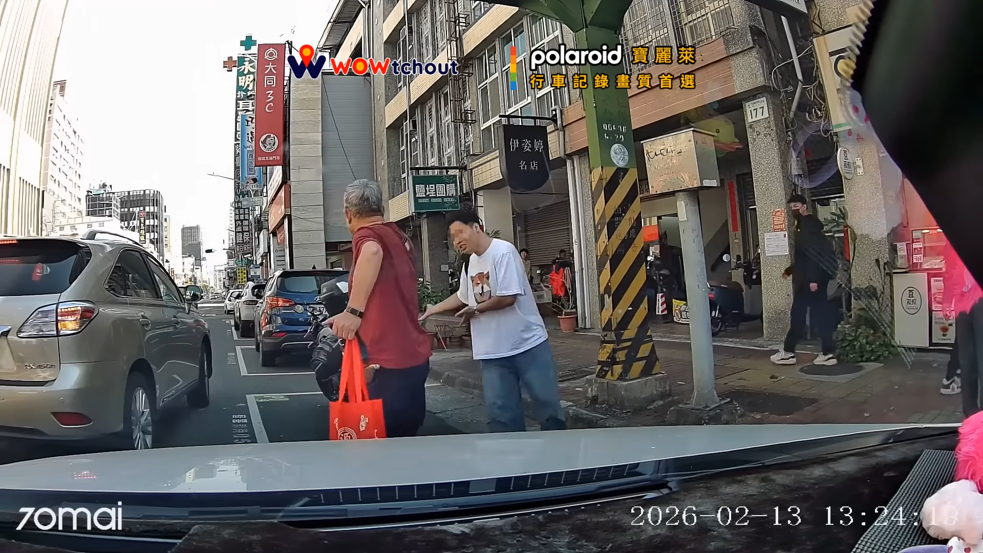 影片來源為行車影像分享平台「WoWtchout - 地圖型行車影像分享平台」上傳的行車紀錄畫面。畫面顯示,事件發生在13日下午約1時22分,地點在鹽埕區五福四路一帶。當時駕駛看到路旁停車格空著準備靠邊,卻發現一名身穿紅衣的阿伯站在車格裡,不斷揮手示意要駕駛先離開,稱「等一下有人要停」。